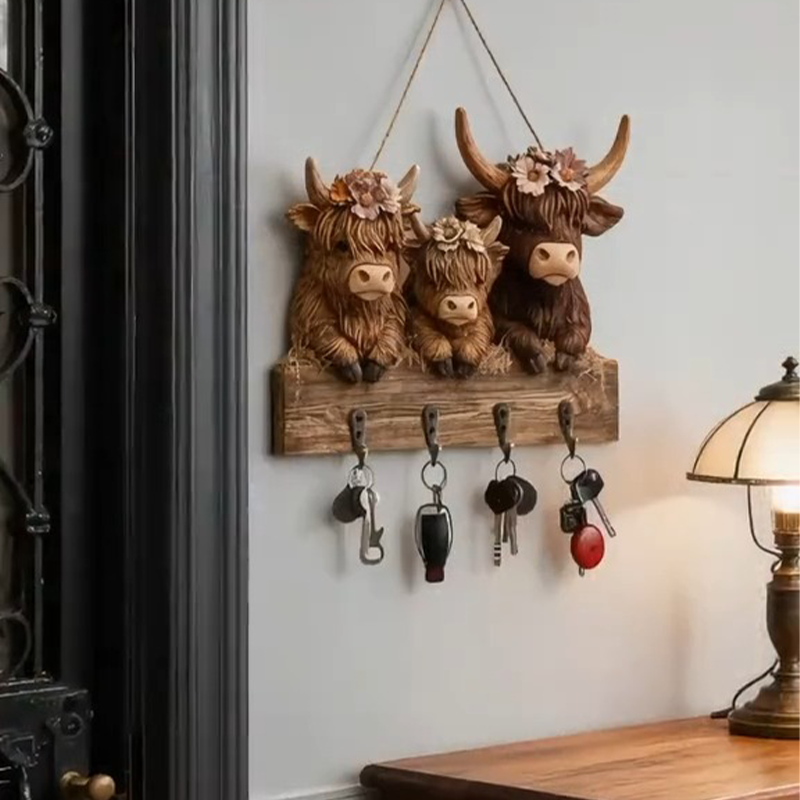 Add rustic charm & cozy warmth to your entryway!Bring a touch of countryside sweetness into your home with our Highland Cow Family Wall Key Holder — featuring three adorable cows with floral crowns, symbolizing love, home, and togetherness.